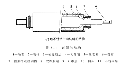 (4)由于橡胶具有独特的弹性,且具有适当的硬度、强度和肯定的耐腐蚀性,故除部分硬轧辊采纳金属辊外,其余硬轧辊和全部软轧辊都采纳硬橡胶层及软橡胶层包面。橡胶硬度(邵尔A型)常用邵氏70、85、100等,一般主动辊比被动辊高。