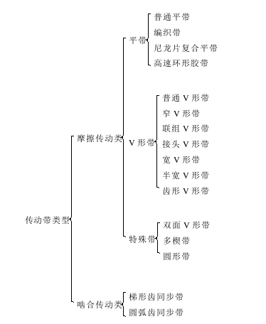 皮带传动根据传动原理可分为摩擦传动和啮合传动。摩擦传动是传动带以肯定的张紧力套在主动轮和被动轮上,依靠传动带和带轮表面之间产生的摩擦力传递休闲。啮合传动则是依靠同步带表面的齿和同步带轮上的齿槽相啮合传递休闲。因此,啮合传动可以达到同链传动或齿轮传动相同的固定传动比。此外,根据传动带在材质和截面形状等方面的不同,常见的传动带大致可以回类如下: