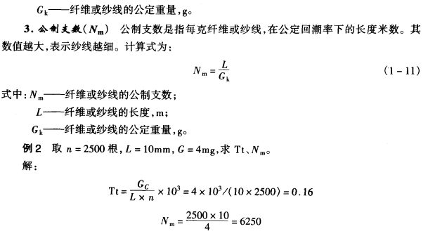 线密度Tt为法定计量单位,全部的纤维及纺纱线均应采纳线密度来表达其粗细,但由于习惯上的原因,表示纤维粗细程度的指标还有旦数和公制支数。