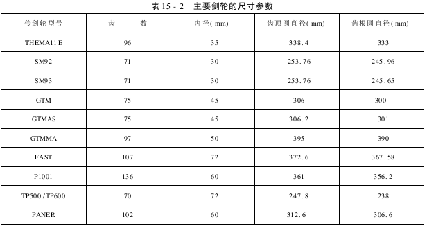 关于金属传剑轮的具体技术参数,各主机厂有不同的要求,一般的标准水平见表15-3所示。