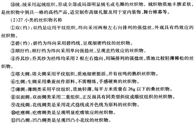 (1)14大类的丝织物名称: