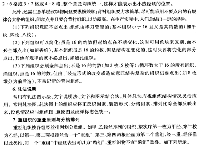 片断图要能反映设计的各种组织所支配的图案特点,根据经纬密度和纹样块面的大小来画意匠纹样的局部,这样可体现意匠的真实性,意匠片断图中还应反应如何匀边、间丝如何点法。