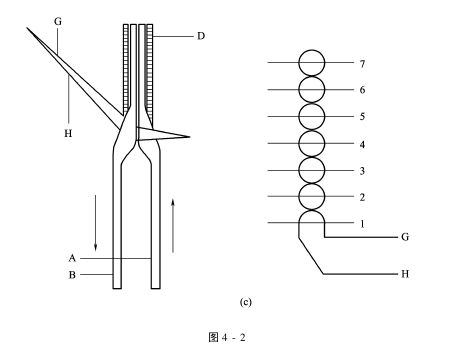 阶段1:在开口的时刻,综丝纱“G”处于绞纱“H”的上面[图4-2(a)]