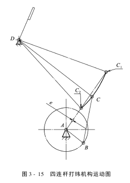 2 的延长线通过主轴中心,则称为轴向打纬机构;否则称为非轴向打纬机构。主轴中心偏离C