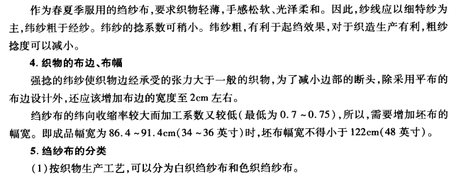 绉纱是由强捻纬纱所织成的稀薄平纹织物。沿着织物横向有着自然折皱效应,完泽柔和。织物具有“薄、结、松、弹”的风格。即手感轻薄松软、富有弹性、透气性较好、绉纹清楚。绉纱布松软、紧身、舒适的特点,很适合做内衣、睡衣、裙料、童服和装饰用品。