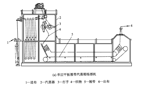 近年来,J形箱式、履带式等连续练漂机,又趋向和导布辊相结合的结构,以提高汽蒸加热的效率。