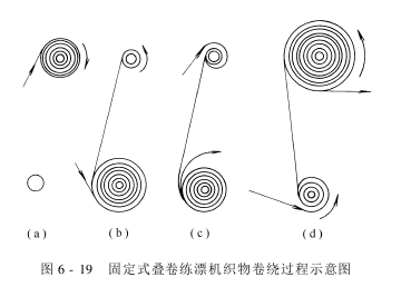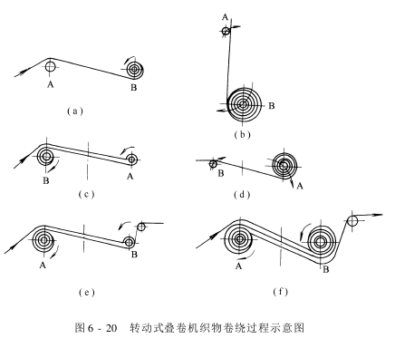 图6-20是转动式叠卷机织物卷绕过程的示意图。
