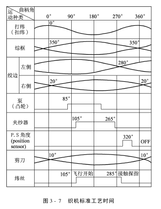 以LW型单喷织机为例,织机标准工艺时间如图3-7所示。
