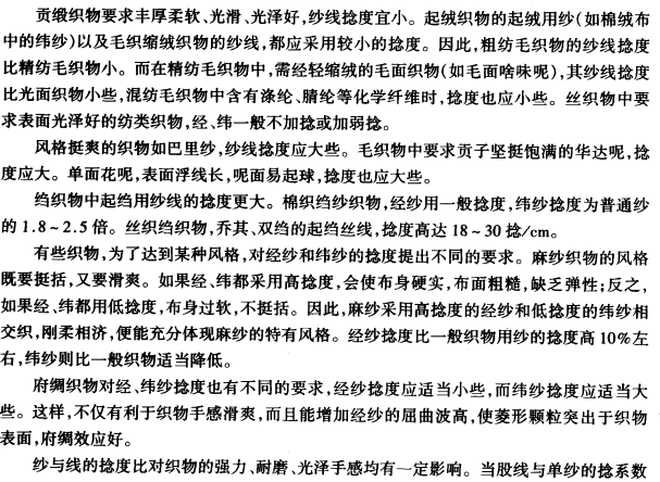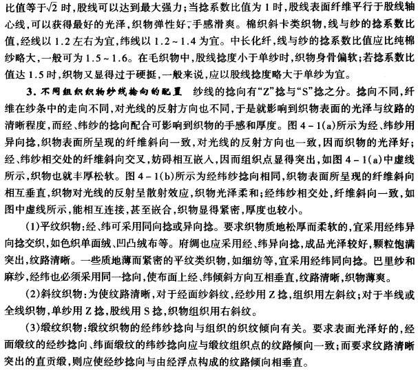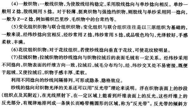 纺纱线结构包含纱条内部的结构、线密度、捻度和捻向等。纺纱线的结构和性质对织物性能和外观风格有着很大的影响。