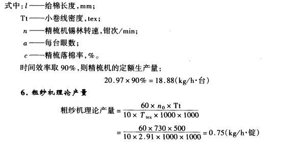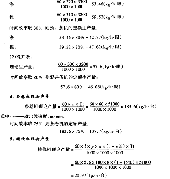 (二)纺部各工序理论产量及定额产量的计算