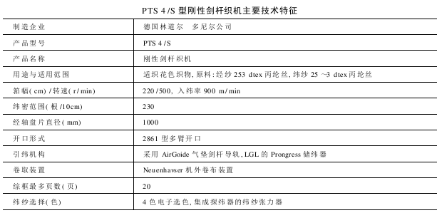 德国林道尔?多尼尔公司的刚性剑杆织机是用增强的碳纤维制成的剑杆杆身,共轭凸轮驱动,压缩空气、轴承导向以及剑杆杆身的冷却结构相互组合而成的一种刚性剑杆织机。