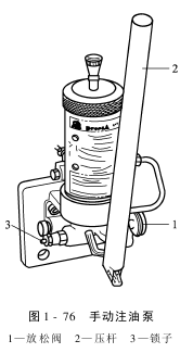 摇轴轴衬的润滑,使用ZL-1锂基脂,每天加油脂一次,操作织机右侧的油泵,将油压入,步骤如图1-76。