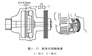 (11)按照图1-77检查刹车片间隙,使其间隙在0.3~0.5mm之间。