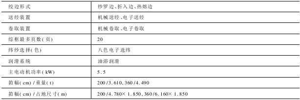常规配置的装置有压电纬停装置,上置式边撑装置,六列接触式电子经停装置。