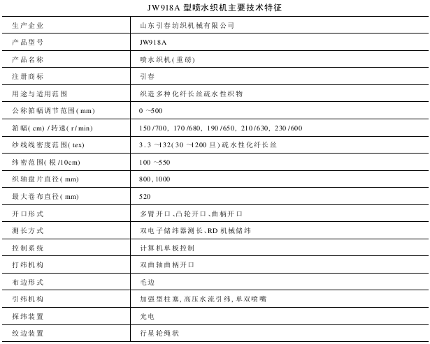 JW813B型、JW918A型喷水织机是山东引春布料机械有限公司,在生产JW813型、JW908型喷水织机的基础上,结合技术进步和市场需求,自主开发生产的一种新型喷水织机。
