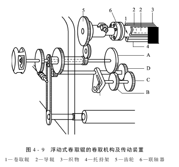 片梭织机的卷取机构根据所配的卷取辊不同可分为:带标准卷取辊的卷取机构和带浮动式卷取辊卷取机构两种。