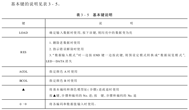 接近开关的调整:颜色转换信号由接近开关TS1、CA2、CB3输出。TS为定时基准用开关,CA、CB为颜色切换用接近开关。接近开关和凸轮的间隙调整为0.5±0.3mm;凸轮一旦靠近接近开关,其相对应的LED灯亮。储纬器的操作,包含指棒、压纱器及旋转阀等的参数设置或修改都在储纬器操纵箱上的预设器上操作。预设器上有指令键、颜色数据设定键、基本键等3种,计30个。