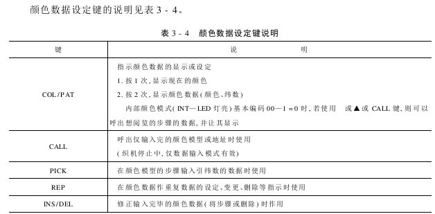 (3)纬丝选择操纵:由纬丝选择指令装置,进行二色或三色纬丝的选择指令,进行纬丝的选择。
