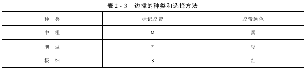 根据织物的不同,需要选择中粗目、细目、极细目边撑(表2-3)。