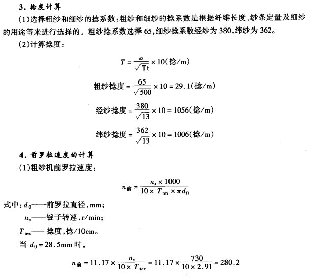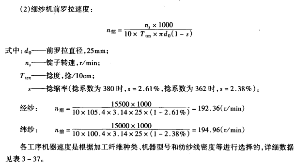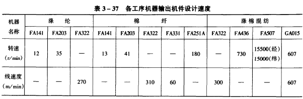 1.各工序半制品线密度的选择  根据原材料的种类、性能和细纱特数,选择的各工序半制品的线密度见表3—36。