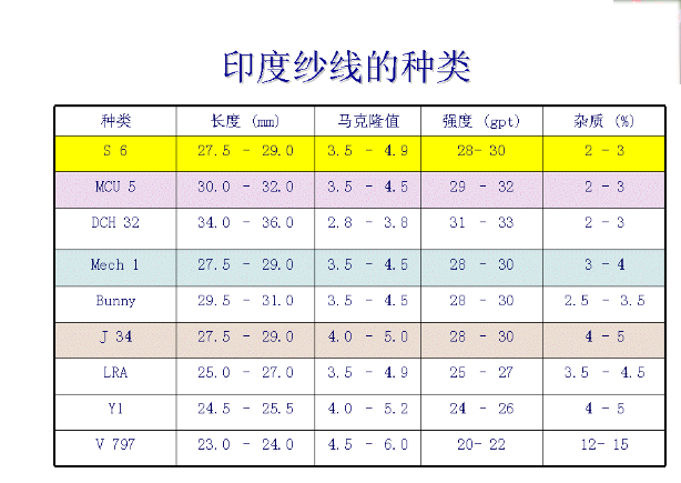 印度有很多种纤维,因为纺纱线质量会随着均匀度,棉结.污染度,强力和上色性等所占比例的变化而变化。