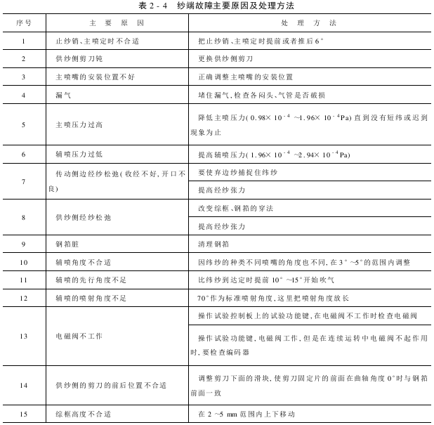 1.纱端故障现象(表2-4):