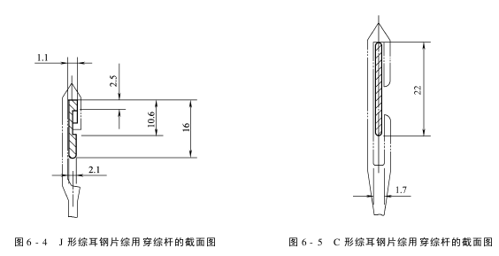 (1)J形穿综杆的规格为:16mm×2.1mm,其主要尺寸见图6-4。