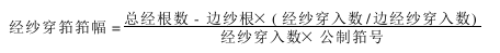 经纱穿筘筘幅一般应小于或等于织机的经纱大穿筘筘幅,经纱大穿筘筘幅和织机公称筘幅的关系见表8-11(以津田驹织机为例)。
