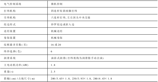 筘幅 2000mm、2300mm、2800mm(有效筘幅=公称筘座-100mm)。