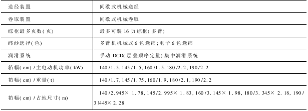 适用范围及织物品种 该机主要为轻、中、重型棉织物设计的,兼顾长丝和精纺毛织物。适应棉、涤棉混纺化纤织物、粘胶、聚酯、涤粘混纺化纤织物品种,适用纺纱线线密度为9.7~194.3tex(60~3英支)。