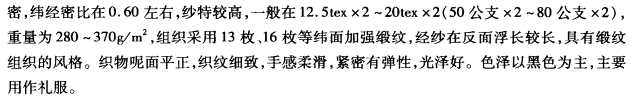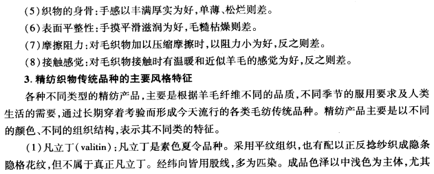 .织纹:清楚细致、平坦完洁、经直纬平,毛纱条干均匀,无雨丝、云斑。