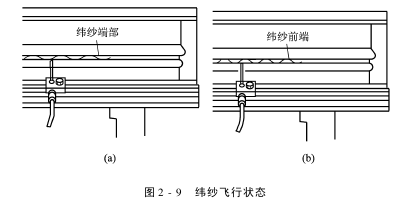 理想的纬纱飞行姿态如图2-9(a),大的“波形”纬纱在筘槽中心偏上方飞行的状态是理想的。